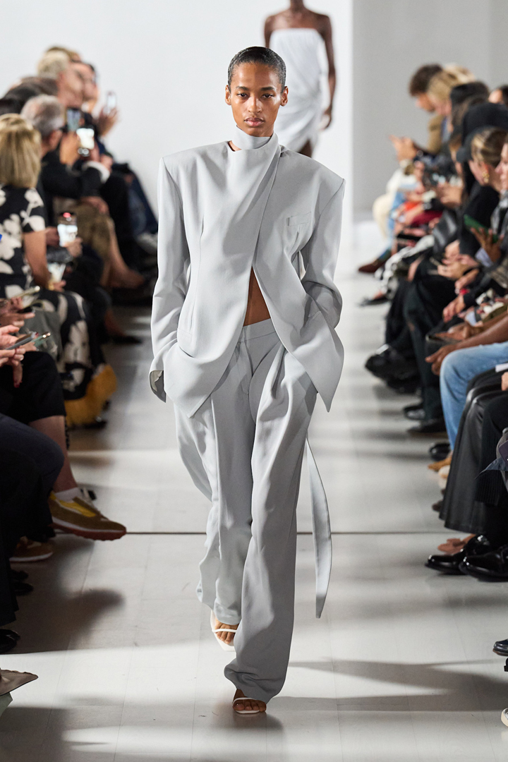 جاءت عروض أسبوع ميلانو للموضة لتغير نظرتنا للكلاسيكيات، فحتى البدلات مزدوجة الصدر Double Breasted Suits التي تشتهر بطابعها الرجالي الصارم، أدرجت بقصات انسيابية تغمر الجسم في نعومة، وكانت ألبيرتا فيريتي Alberta Ferretti أفضل من قدمها في عرض غلبت عليه البساطة من دون الإخلال بالفخامة، فقد تألقت إحدى العارضات بتصميم أبيض بجاكيت طويل مزود بأزرار ذهبية طبعته بالفخامة، أما البنطلون فجاء مستقيم القصة وطوله يغطي جزءًا من القدم.