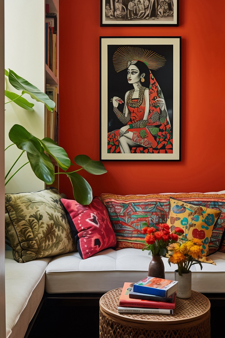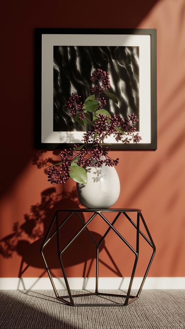 - درجات الأحمر الجريئة (من العنابي إلى الأحمر الداكن) تشيع لمسةً دراميةً دون أن تُطغى على باقي الألوان.