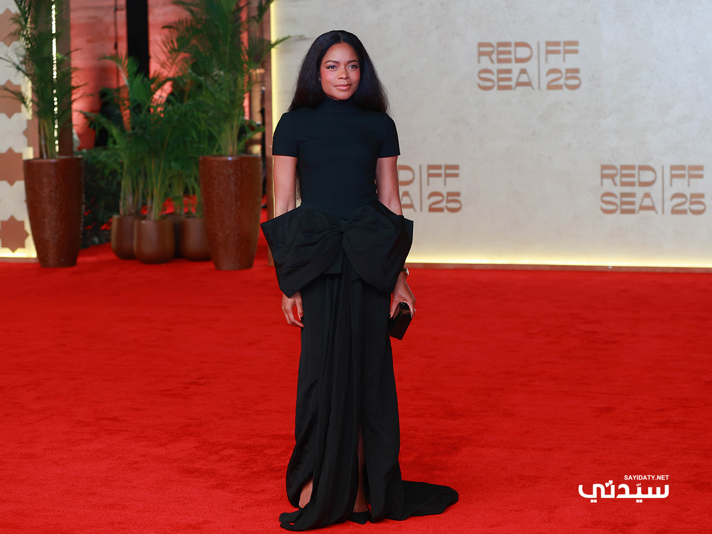 تألّقت النجمة جيسيكا ألبا Jessica Alba على سجادة مهرجان البحر الأحمر السينمائي 2025 بفستان أسود كلاسيكي من تصميم إيلي صعب Elie Saab، تميّز بقَصته على شكل حورية البحر مع ذيل طويل منسدل، وقد جاء الفستان بياقة مفتوحة ومزيّنة بكشكشة دراماتيكية على الخصر؛ مما أبرز قوامها الممشوق. واختارت معه عِقداً ألماسياً فاخراً، وأقراطاً متدلية. بينما اعتمدت تسريحة شعر مرفوعة بلمسة رومانسية، ومكياجاً هادئاً يركّز على العيون.