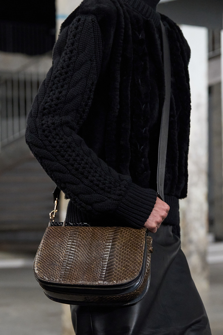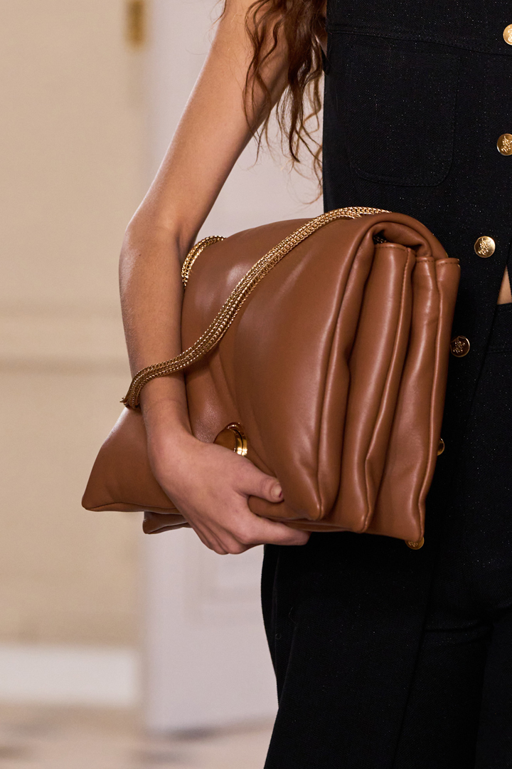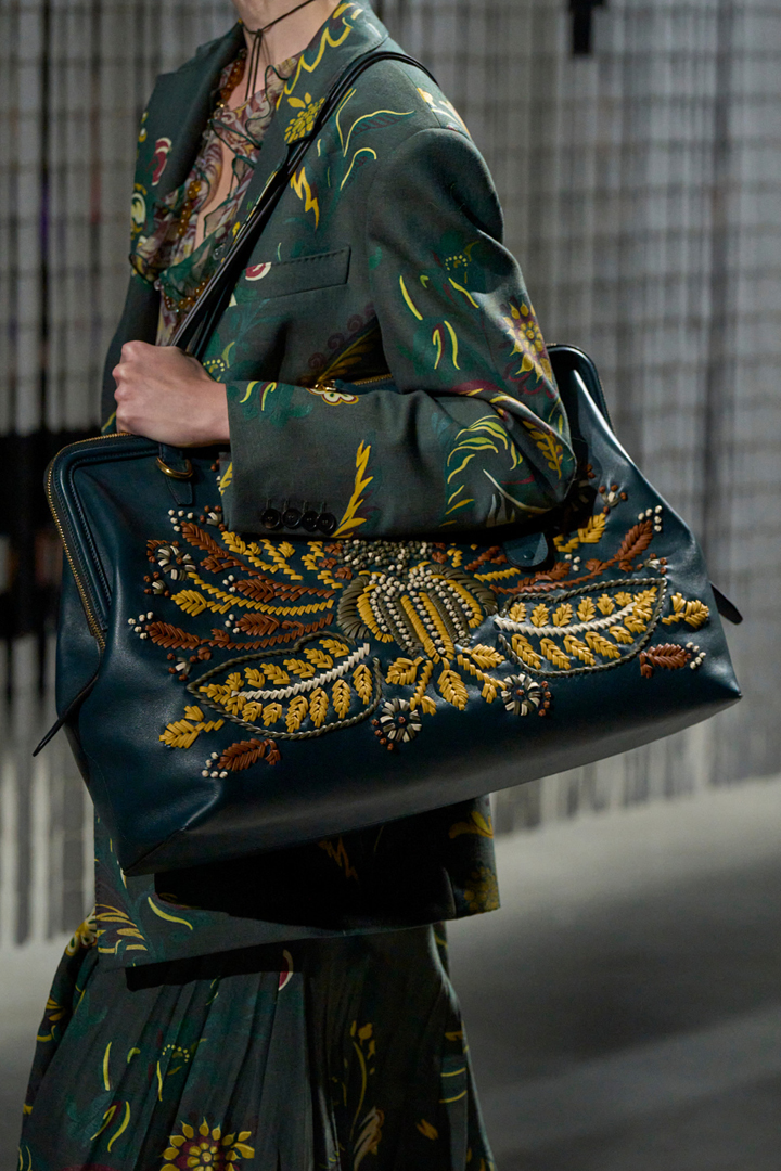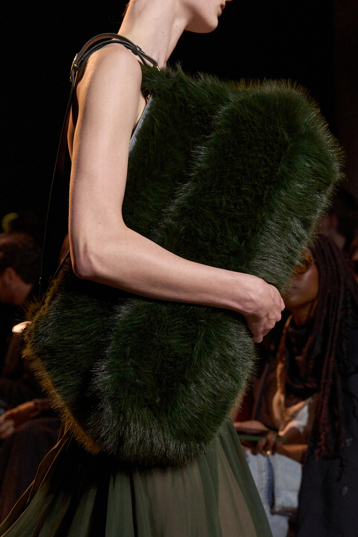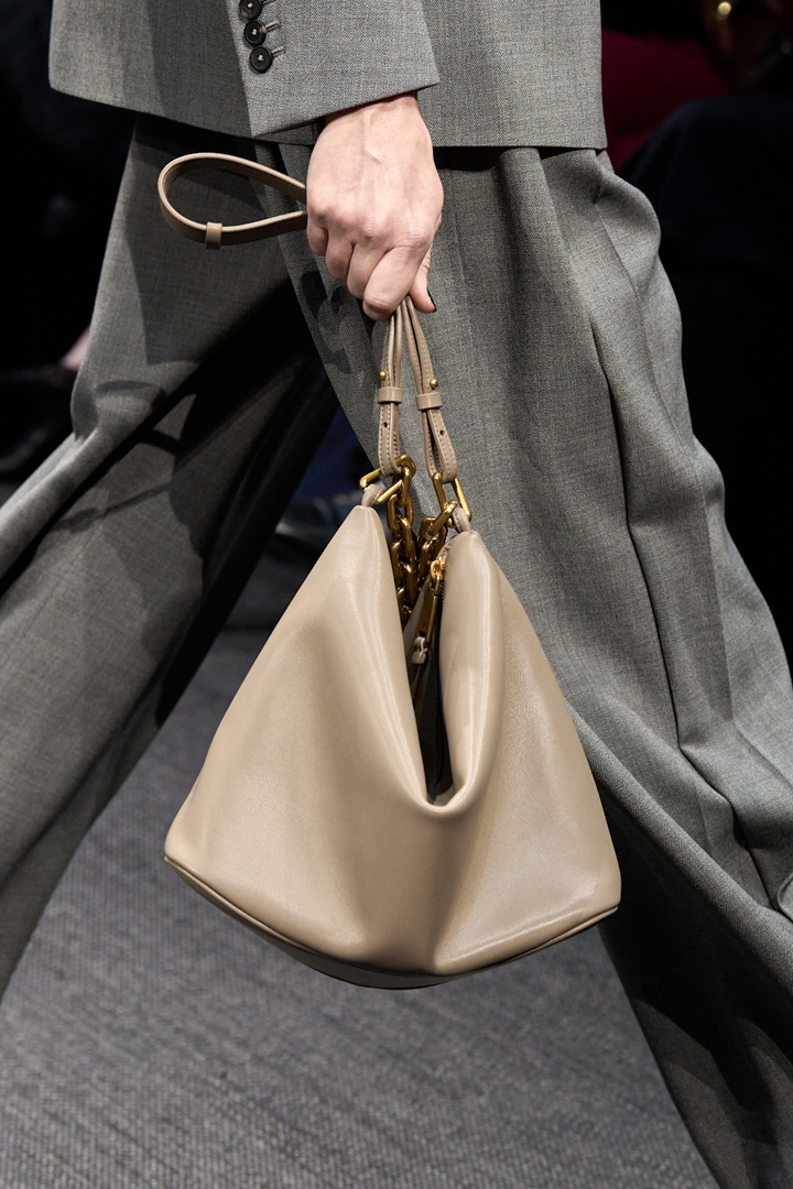 إذا كنتِ تبحثين عن حقيبة سهلة التنسيق ويمكن أن تضاعف جمال إطلالاتك الخريفية، فأنتِ بحاجة إلى الاطلاع على الحقيبة البنية الداكنة التي رصدناها في عرض فندي Fendi، على الرغم من حجمها المتوسط؛ إلا أنها ستسمح لكِ بحمل جميع أغراضك، وهي تناسب كثيراً صاحبات الجسم النحيف.