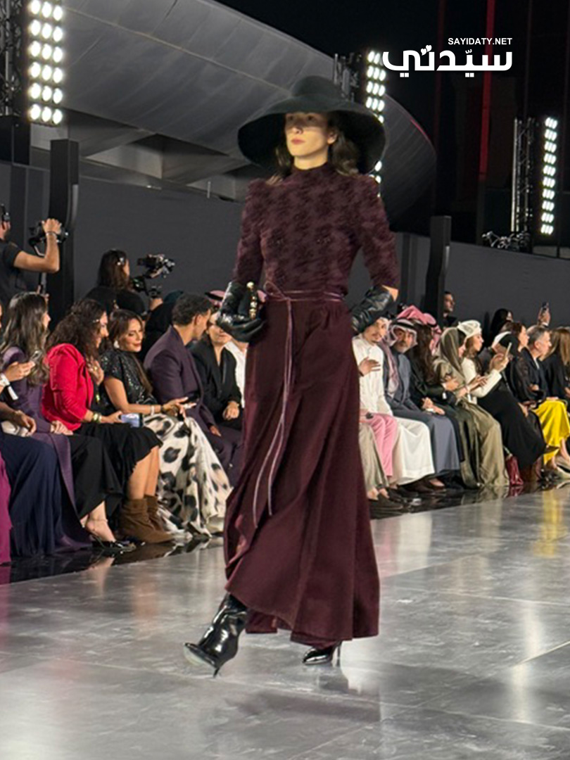 أضفت الألوان الدافئة مثل البرغندي على العرض لمسة فخمة ملوكية، وتنوعت التصاميم بين التنانير الطويلة والأقمشة الشتوية، إلى جانب المعاطف الطويلة المفعمة بالحركة والنعومة.