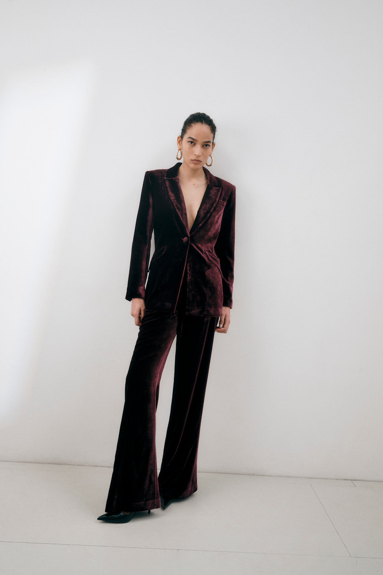 • لإطلالة ليلية أنيقة ننصحك بأن تجرّبي بليزرًا من المخمل أو الساتان فوق توب دانتيل وبنطلون جلد، لإطلالة راقية بلمسة جريئة.