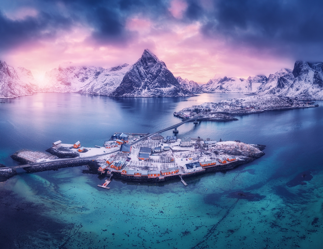 للأزواج الذين يفضلون البرد على الحر، تُقدم جزر لوفوتن مشاهد طبيعية آسرة للقلوب. في عام 2026، ظلت هذه المنطقة وجهةً مفضلةً لعشاق رياضة المشي لمسافات طويلة والتجديف بالكاياك والتصوير. ولعلّ أبرز ما يُميز هذه المنطقة هو تسلق قمة راينبرينجن، التي تُطل على منظر بانورامي خلاب للفيورد وقرى الصيد الصغيرة في الأسفل. تتضمن الخدمات اللوجستية هنا استئجار سيارة والإقامة في “روربو” – وهو كوخ صيد تقليدي تم تحويله إلى مكان إقامة فاخر ومريح. خلال فصل الشتاء، وتُعد الجزر من أفضل الأماكن على وجه الأرض لمشاهدة الشفق القطبي، بينما يُقدم فصل الصيف ظاهرة “شمس منتصف الليل”؛ حيث لا تغيب الشمس تماماً. إنها وجهة تتطلب الكثير من النشاط البدني، لكن المكافأة هي الشعور بالانغماس الكامل في واحدة من أجمل البيئات الطبيعية في العالم.