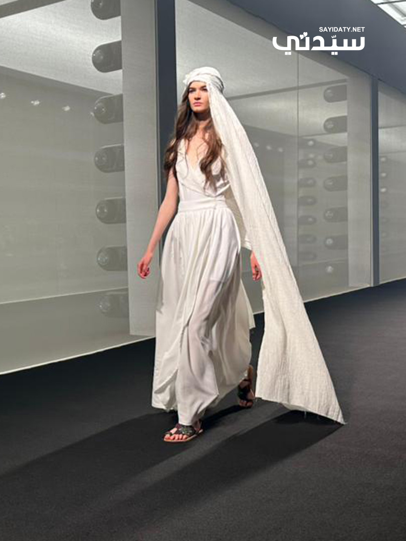 شهد العرض إطلالات أنثوية آسرة باللون الأبيض الناصع أو العاجي، تميزت بأقصى درجات الانسيابية، وبرزت فساتين طويلة ذات قصات بسيطة لكنها درامية، وخاصة تلك التي ترافقت مع غطاء رأس أبيض طويل وفضفاض ينسدل بخفة على الكتفين، مقدماً مشهداً بصرياً يجمع بين النقاء والفخامة المستوحاة من العبايات والأغطية التقليدية، ولكن بلمسة عصرية جريئة تكشف عن حداثة التصميم.