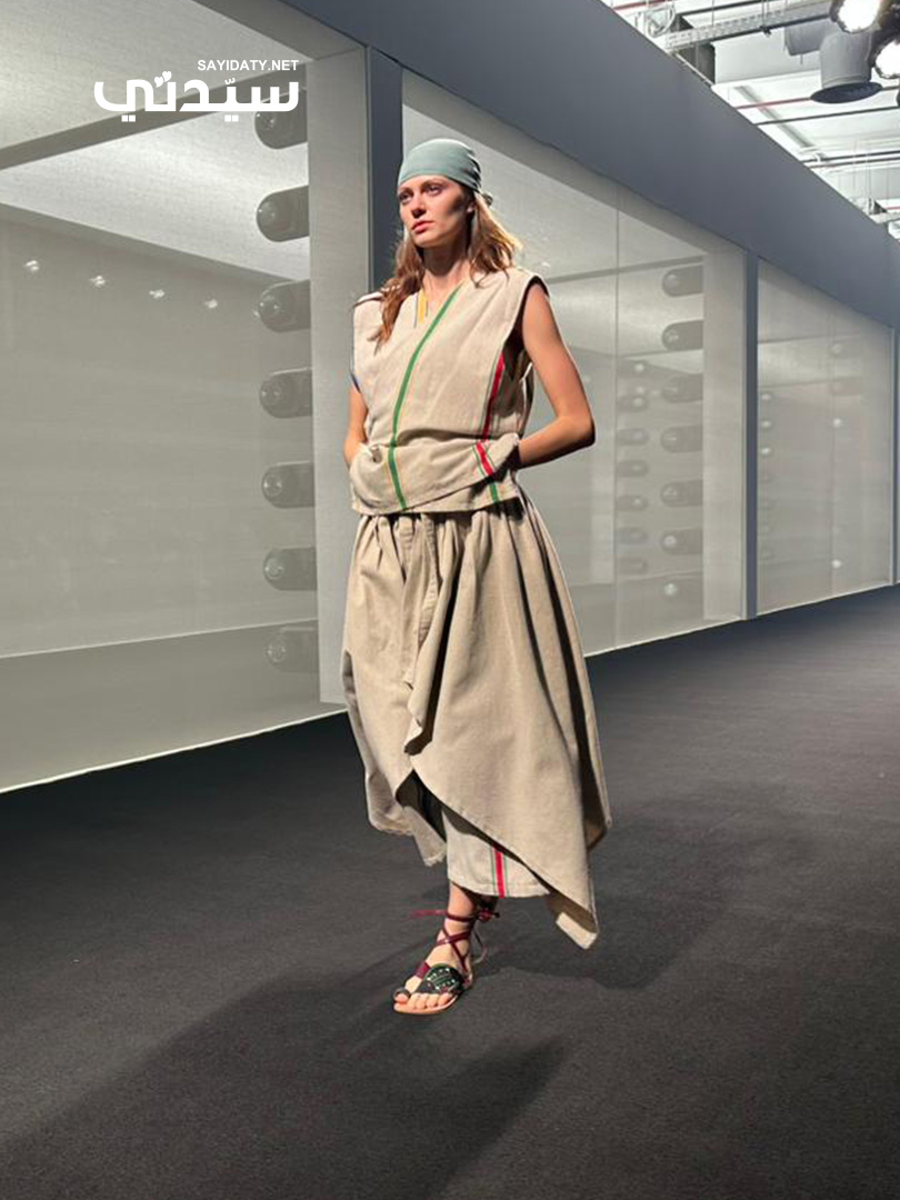كما لوحظ الاستخدام المتقن للخطوط الملونة كالأخضر والأحمر والبرتقالي التي زينت حواف الملابس أو استخدمت كأحزمة أو أربطة بسيطة، مضيفة حيوية مرحة على الألوان الترابية الهادئة، ومؤكدة على قدرة العلامة على دمج التفاصيل التراثية كالأحزمة المنسوجة بأسلوب عالمي.