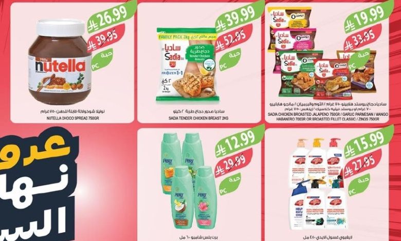 عروض اسواق المزرعة المنطقة الغربية الأسبوعية الأربعاء 24 ديسمبر 2025 تشمل الخس والطماطم الكرزية والبصل الأبيض واليوسفي البلدي والكمثرى والتمر السكري والقشطة الطازجة وزبدة الفول السوداني ثم تمتد إلى الأجهزة مثل عصارة حمضيات كهربائية وقدر طهي غير لاصق ومجفف أعشاب منزلي باقل الاسعار المناسبة للجميع