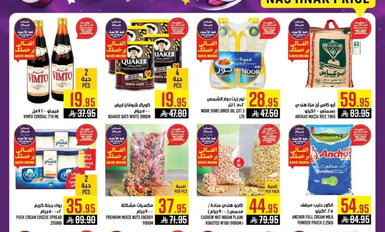 عروض ابراج هايبر ماركت الاسبوعية الاربعاء 4 فبراير 2026 الموافق 16-8-1447هـ و تحتوي علي عصير فانتا وعلب نستله ميلك وعلب كوكاكولا كولا وأرز بسمتي ولبن أنشري فريش وشوفان أنشري ودجاج مجمد وأرز أبيض وكريمة طبخ وأرز أصفر وفول مدمس ولوبيا ولحم بقري مجمد وتونة وفول سوداني ولبن أنشري وخليط كريمة باسعار مميزة