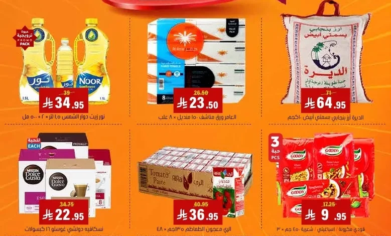 عروض أسواق العامر السبت 4 أكتوبر 2025 تقدم باقة واسعة من المنتجات الغذائية الأساسية من أجبان متنوعة ولحوم طازجة مع تشكيلة مميزة من الخبز والمنتجات المخبوزة و تتضمن أيضا تشكيلة واسعة من المواد الغذائية الأساسية مثل زيت دوار الشمس والأرز والورق المناديل إلى جانب معجون الطماطم وأنواع متعددة من السلع المنزلية