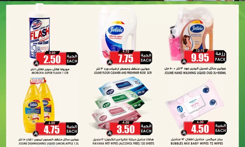 نقدم لكم احدث عروض اسواق النخبة الاثنين 24 نوفمبر 2025 و تحتوي علي تشكيلة رائعة من منتجات العناية المنزلية والمنظفات من علامات تجارية معروفة مثل موروفا وجولين وبيتل بتوفر مناديل الأطفال والمناديل الورقية و تشكيلة من سوائل الغسيل ومنظفات الزجاج ومطهرات الأسطح والسجاد بجانب مبيضات الملابس والمعقمات باقل الاسعار
