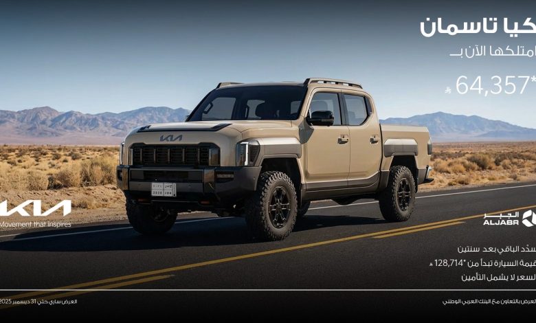 عروض كيا الجبر على سيارة تاسمان 2026 ادفع ٪50 الآن والباقي بعد سنتين