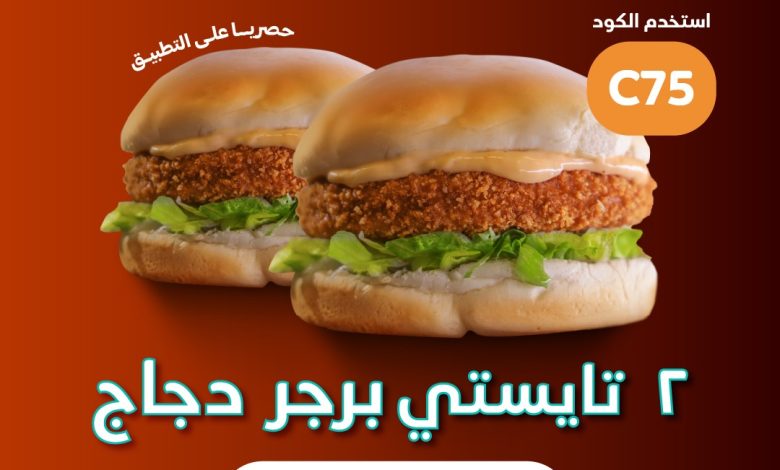 - يقدم مطعم الطازج 2 تايتسي برجر دجاج او 2 ساندويتش كباب مجانا عند الطلب فوق 75 ريال في عرض الويكند عند استخدام الكود K75
