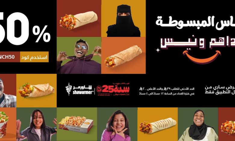 عروض مطعم شاورمر علي وجبات الغداء مع كود خصم اضافي 50%
