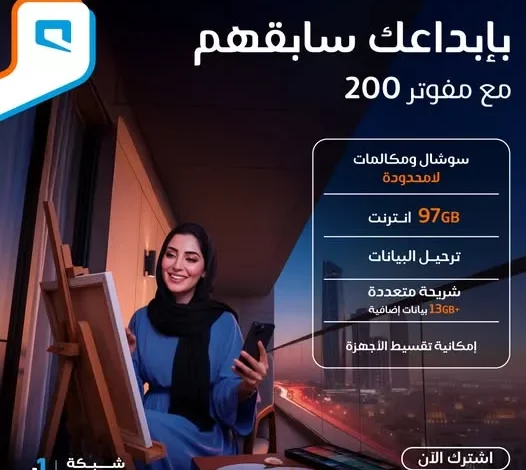 - إبداعاتك تكمل مع مفوتر 200 استمتع بسوشال ومكالمات لامحدودة 97 جيجا إنترنت