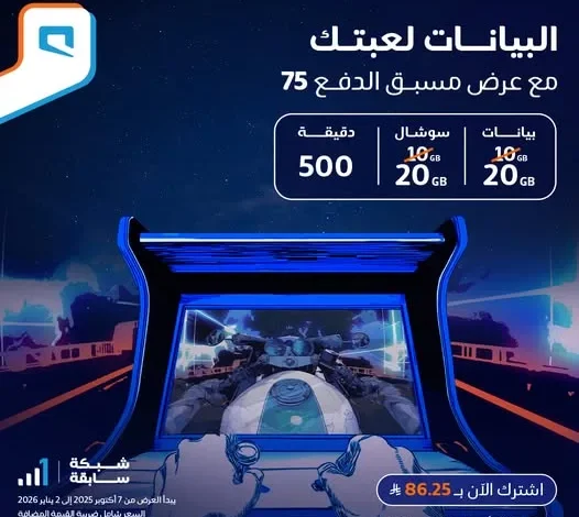 عروض موبايلي على خط مسبق الدفع 75 وخل البيانات لعبتك