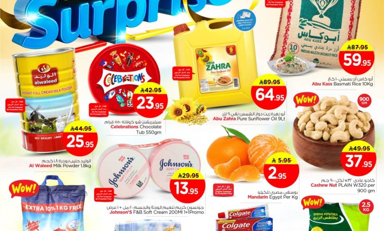 عروض نستو القصيم الاحد 8 رجب 1447هـ تحتوي علي حليب البودرة وزيت دوار الشمس وأرز بسمتي فاخر بالإضافة إلى شوكولاتة متنوعة ومكسرات الكاجو واليوسفي المصري ومعجون الأسنان والمناديل الورقية والبطاطس المجمدة و تشمل أصناف الأرز المختلفة وزيوت الطهي المتعددة وأنواع العسل الطبيعي ومنتجات الشوكولاتة