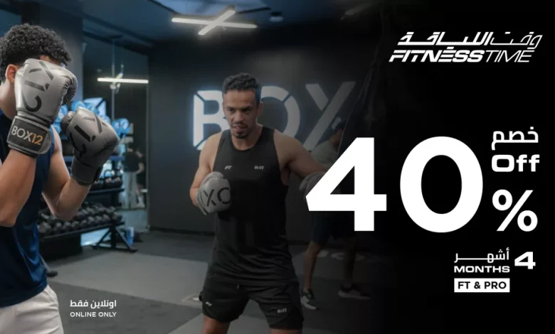 عروض وقت اللياقة خصم 40% على اشتراك 4 أشهر لفئة فتنس وبرو