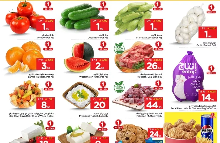 عروض الوفاء هايبر ماركت السبت 14-2-2026 الموافق 26 شعبان 1447 و تشمل علي تشكيلة متنوعة من المنتجات الطازجة كالفواكه والخضروات واللحوم والدجاج والأسماك بالإضافة إلى الألبان والأجبان والمجمدات والمكسرات والحلويات والتمور والبيض ووجبة عائلية متكاملة باسعار مميزة لفترة محدودة .