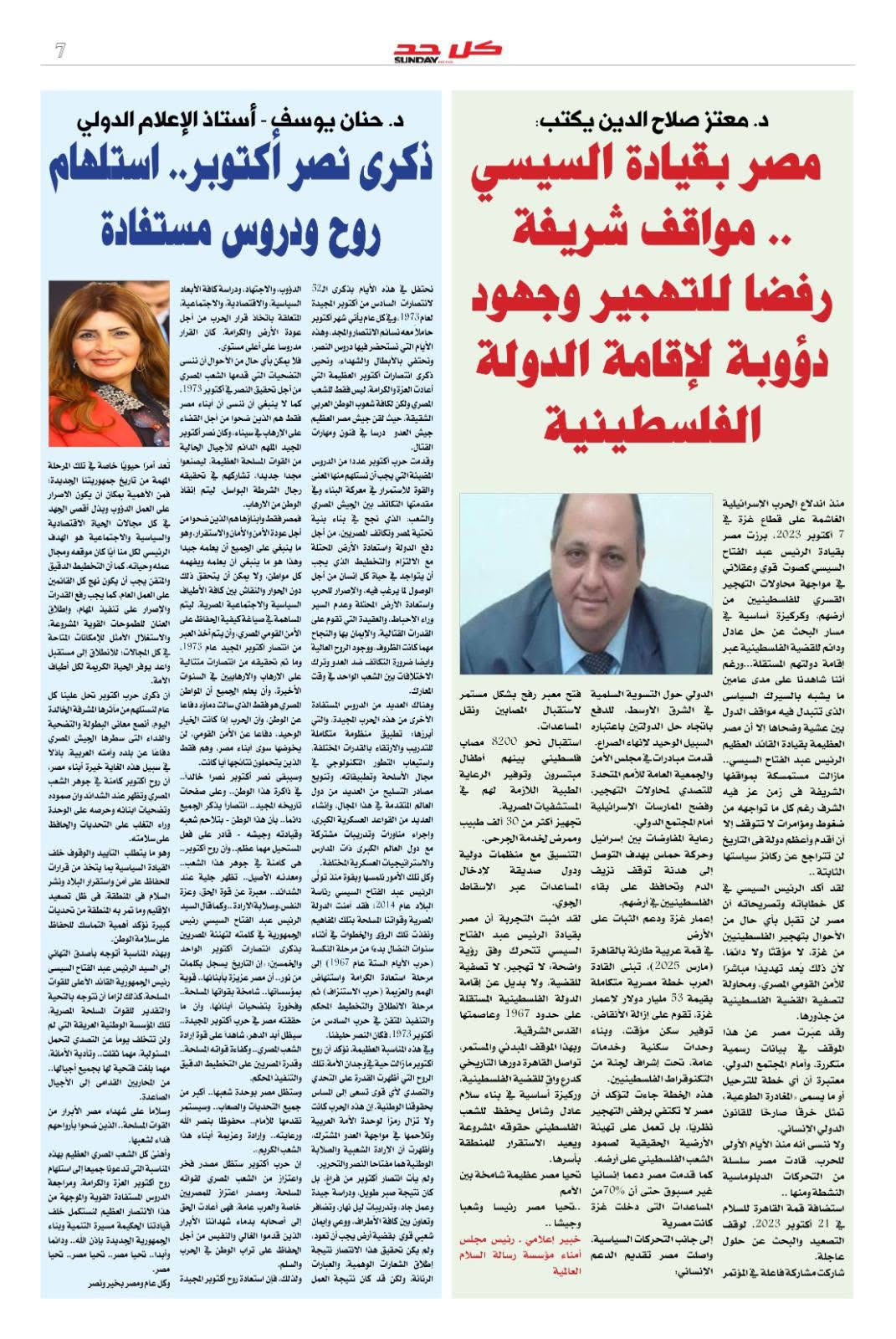 إذ صدر امس الأحد الموافق 5 أكتوبر 2025، العدد 48 من مجلة “كل حد” الصادرة عن مؤسسة رسالة السلام العالمية، حاملاً ملف رئيسي بعنوان : ” أكتوبر استقلال الإرادة ” في سياق استلهام دروس نصر أكتوبر المجيد ومقاربة أبعاده الوطنية والقومية في ضوء تحديات الحاضر .