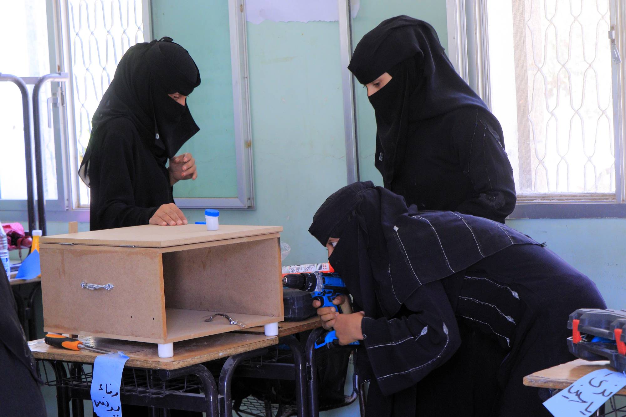 متدربات يمنيات يعملن على تركيب فرن شمسي (الأمم المتحدة)