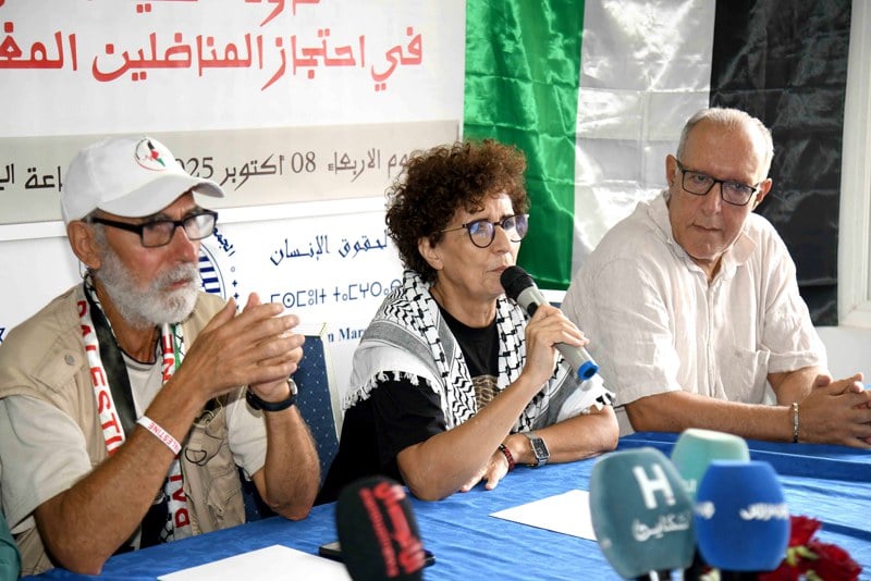 كما تحدث المشاركون في الندوة الصحافية حول استمرار اعتقال عزيز غالي وعبد العظيم بن الضراوي مع مشاركين من جنسيات من بينها الأرجنتين ونيجيريا وليبيا، رغم ترحيل عشرات المشاركين الآخرين إلى تركيا والأردن واليونان.