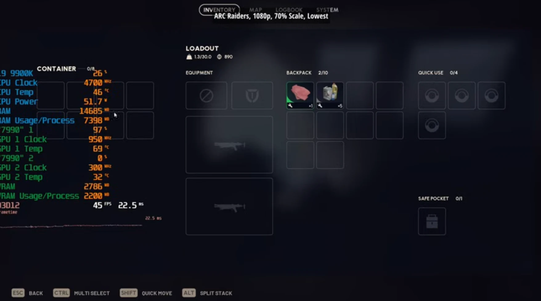 عند الانتقال إلى الألعاب المعاصرة مثل Arc Raiders وCyberpunk 2077 وCS2، لم يتمكن الكارت -بأي طريقة- أن يُفعّل وحدتي الـ GPU معًا، ورُغم ذلك شغّل هذه الألعاب بإعدادات محترمة للغاية.